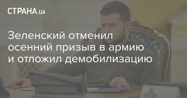 Президент Украины Владимир Зеленский отменил осенний призыв в армию и отложил демобилизацию. Соответствующий указ опубликован на сайте президента.