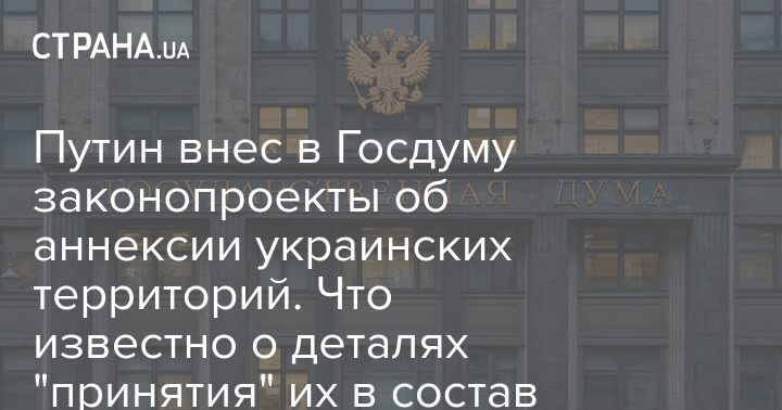 В Госдуму внесены законопроекты президента РФ Путина об аннексии украинских территорий. Что известно на данный момент о деталях "принятия" их в состав РФ: