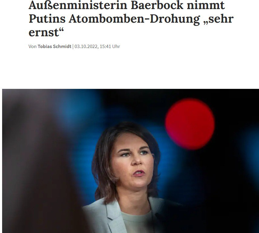 Комментируя заявления о возможности применить ядерную бомбу, Бербок сказала: "Мы очень серьезно относимся к его словам, все остальное было бы небрежностью".