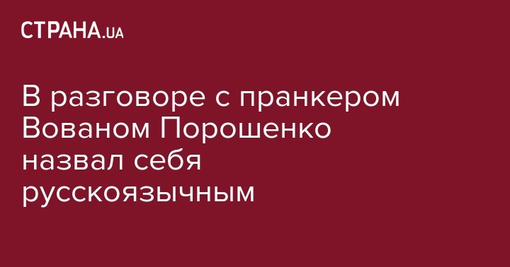В разговоре с пранкером Вованом (Владимир Кузнецов) президент Украины Петр Порошенко признал себя русскоязычным. Подробности беседы содержит видео, опубликованное на YouTube.