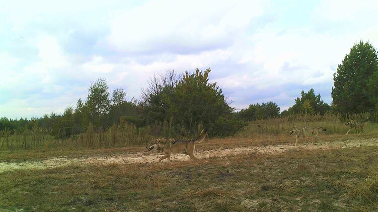 Чернобыльский радиационно-экологический биосферный заповедник опубликовал снимок фотоловушки со стаей волков. На нем едва различимы три особи, так как они благодаря окрасу практически сливаются с ландшафтом.