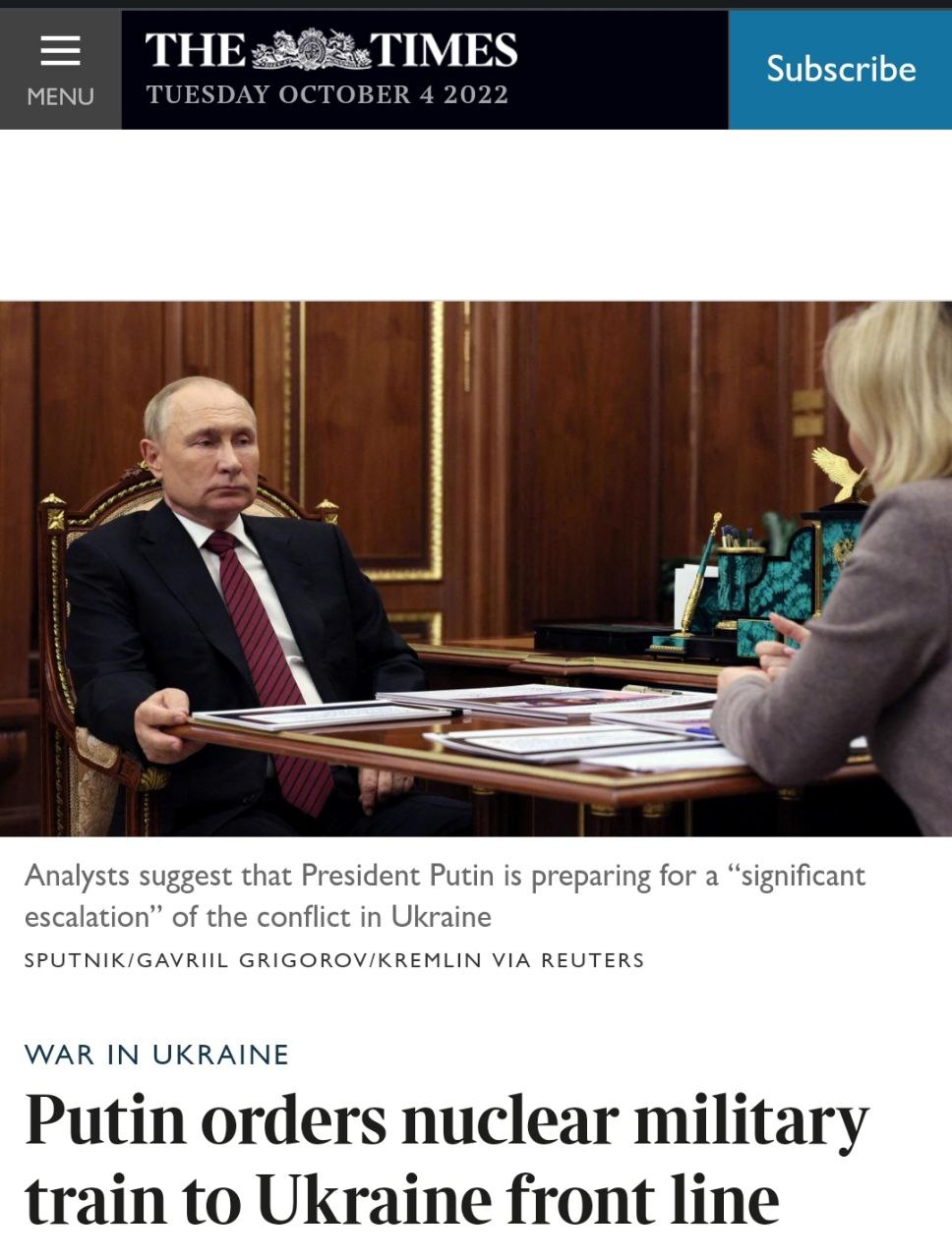 07:51 Россия планирует устроить демонстрационный подрыв ядерного оружия на границах Украины, пишет британская газета Times со ссылкой на военные источники.