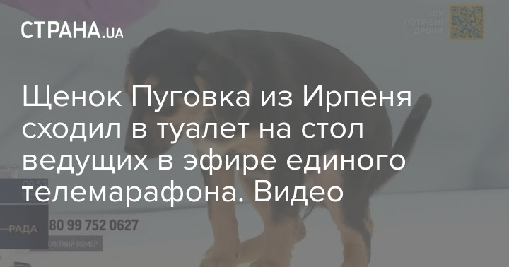 В утреннем эфире 1+1, который транслировался, в том числе, и на телеканале "Рада" в рамках телемарафона, щенок Пуговка из Ирпеня сходил в туалет на стол ведущих.