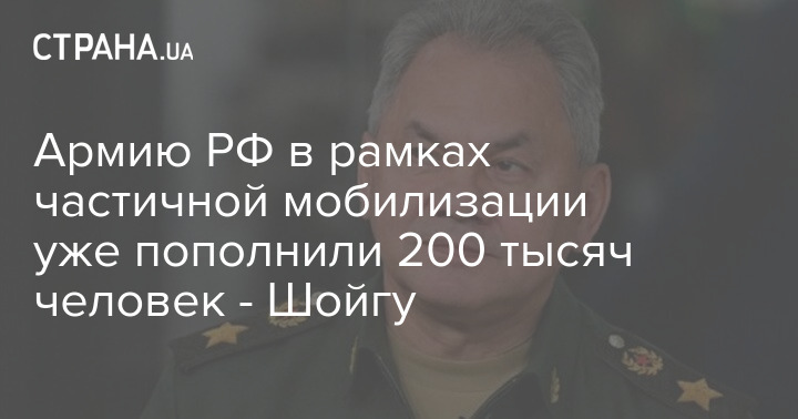 Армию РФ в рамках частичной мобилизации уже пополнили 200 тысяч человек - Шойгу