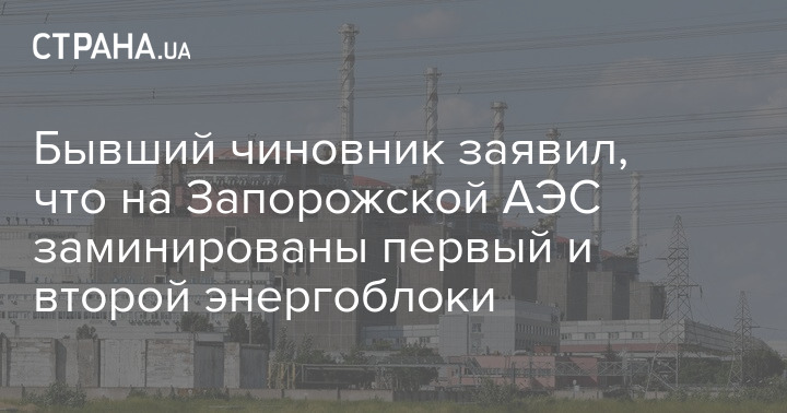 Бывший чиновник заявил, что на Запорожской АЭС заминированы первый и второй энергоблоки