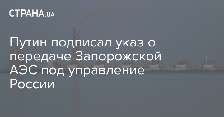 Президент РФ Владимир Путин поручил передать Запорожскую АЭС под управление России.
