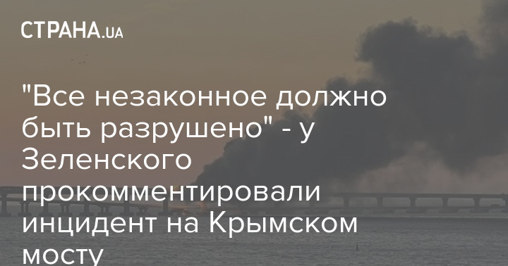 "Все незаконное должно быть разрушено" - у Зеленского прокомментировали инцидент на Крымском мосту