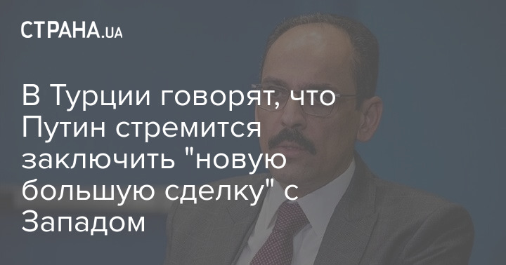 Советник президента Турции Ибрагим Калин считает, что президент России Владимир Путин стремится заключить с Западом "новую большую сделку", и именно этим можно объяснить в частности желание Москвы идти на переговоры.