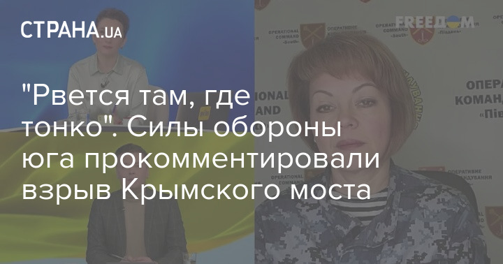 "Рвется там, где тонко", - добавила Гуменюк о подрыве Крымского моста.