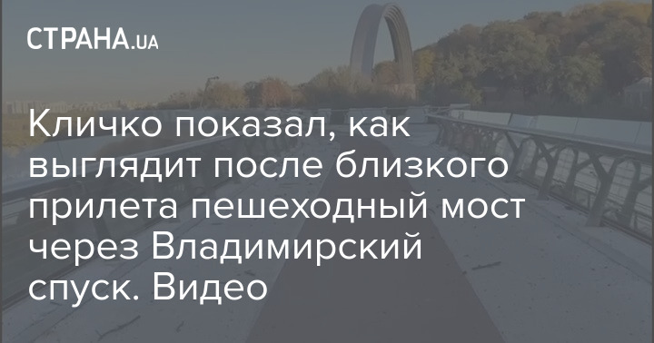 Кличко показал, как выглядит после близкого прилета пешеходный мост через Владимирский спуск. Видео
