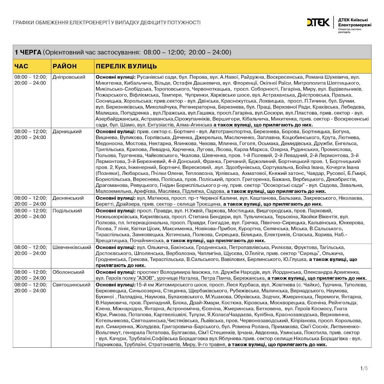 18.55 А вот график веерных отключений в Киеве с тремя очередями. Сейчас, как заявила КГГА, будут отключать третью очередь.