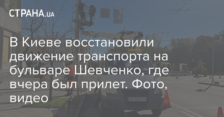 В Киеве восстановили движение транспорта на бульваре Шевченко, где вчера был прилет. Фото, видео