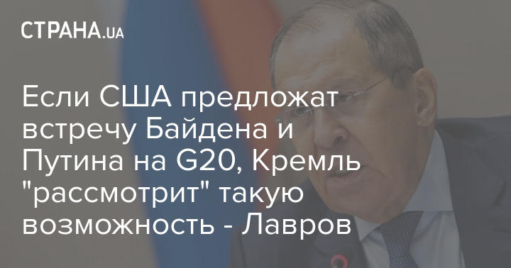 Глава Министерства иностранных дел России Сергей Лавров заявил, что, если от США поступит предложение о встрече Джо Байдена с Владимиром Путиным на G20, Кремль его "рассмотрит".