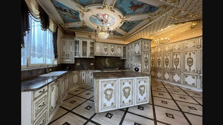 "Квартира выполнена в самом дорогом стиле - дворцовом и полностью оснащена эксклюзивной мебелью Asnagi, jumbo, и т д. и техникой Smeg. Отделка: мраморные полы, алмазный рез, дворцовый паркет из 12 видов элитных пород, кованная балюстрада с напылением 24 карата, панорамное остекление с бронированными стеклопакетами, ручная гипсовая лепнина (эксклюзив), роспись стен и потолков вручную ведущими художниками Украины", - гласит объявление на сайте.
