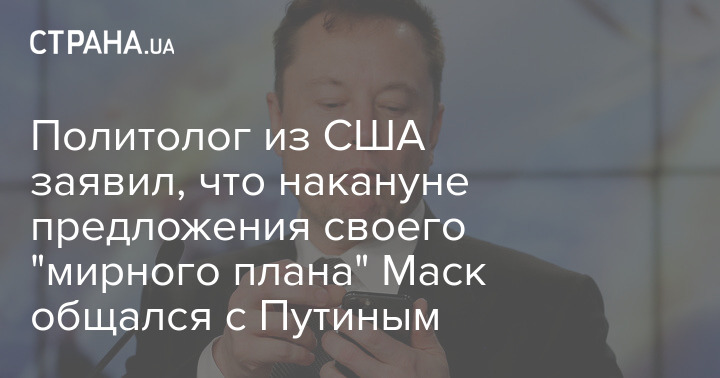 Политолог из США заявил, что накануне предложения своего "мирного плана" Маск общался с Путиным