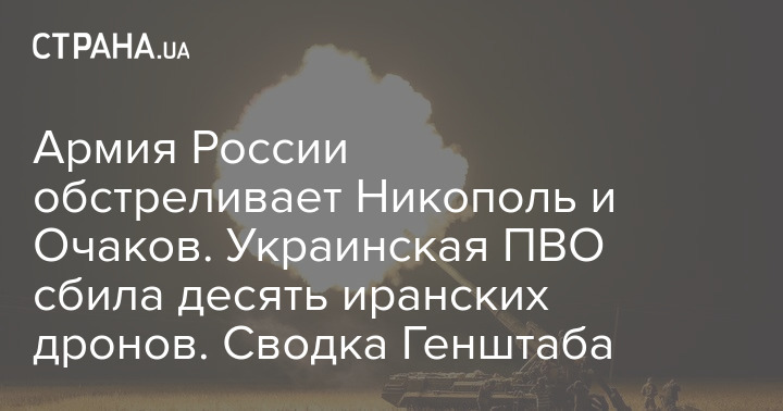 В Генеральном штабе Вооруженных сил Украины опубликовали оперативную сводку с фронта по состоянию на 18:00 12 октября. Сообщается, что российские войска обстреливают Никополь и Очаков, а украинская ПВО за день сбила десять иранских дронов и четыре вертолета.