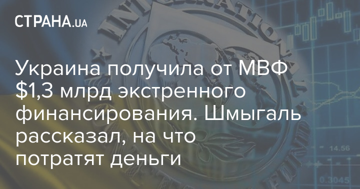 Украина получила от МВФ $1,3 млрд экстренного финансирования. Шмыгаль рассказал, на что потратят деньги
