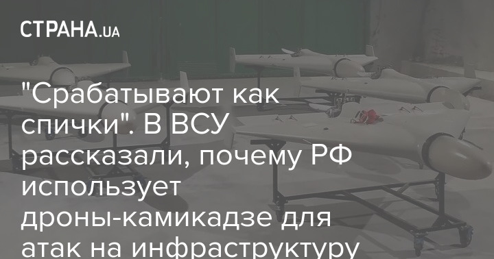 "То, что они пытаются использовать эти дроны по объектам критической инфраструктуры, лишают нас воды, тепла, электричества. Это исходя из тактико-технической характеристики и назначения этих дронов-камикадзе, поскольку они срабатывают как спички", - заявила спикер.