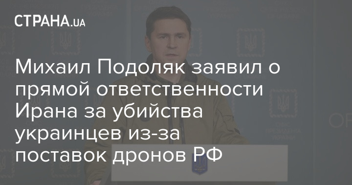 Михаил Подоляк заявил о прямой ответственности Ирана за убийства украинцев из-за поставок дронов РФ