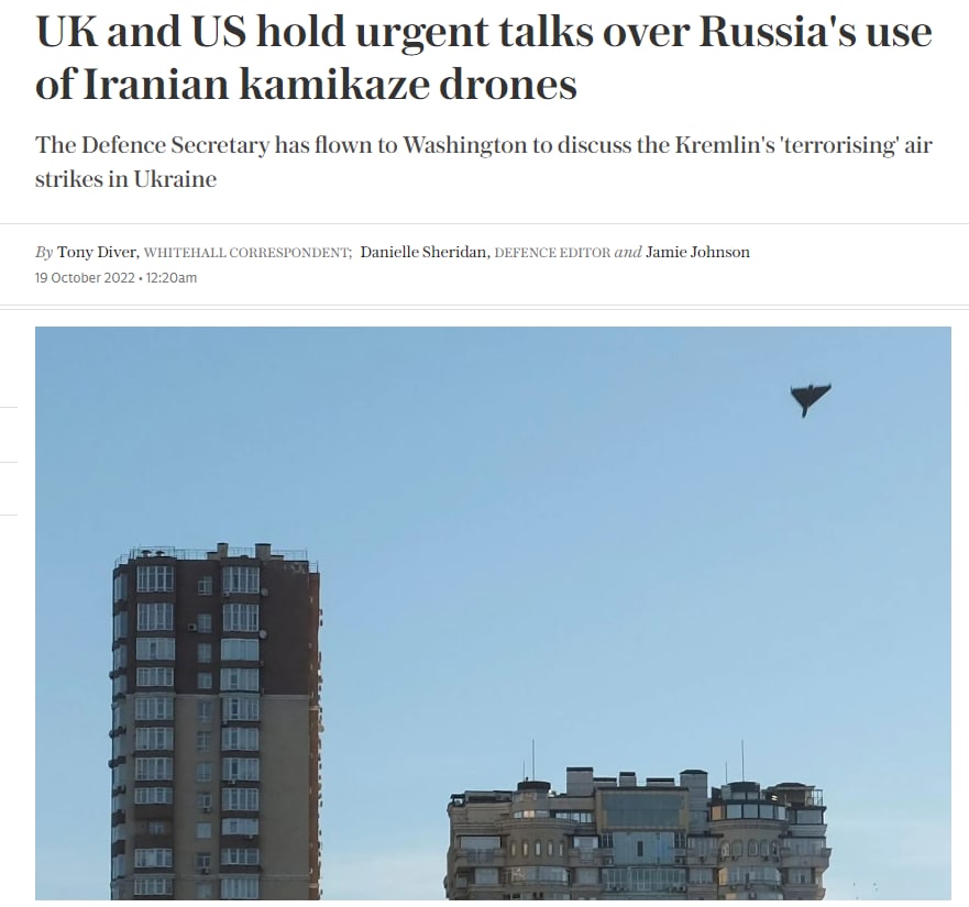 "Во вторник Бен Уоллес вылетел в Вашингтон на срочную встречу со своим американским коллегой, чтобы обсудить использование Россией беспилотников для нападения на Киев", - сообщает издание.