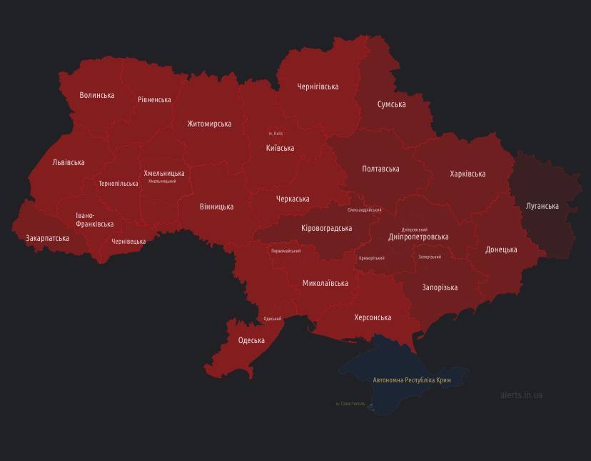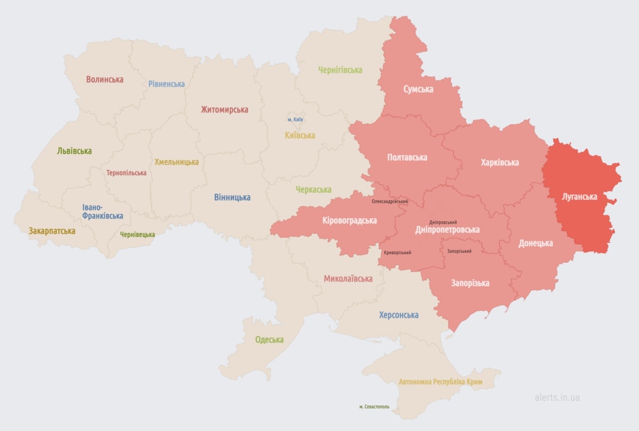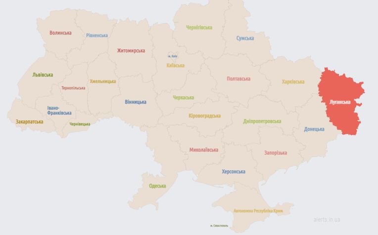 06.20 Карта тревог на сейчас. Тревога только в Луганской области.