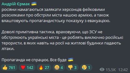 В тексте сообщения говорится что "будут обстрелы жилых кварталов ВСУ" и призывают срочно эвакуироваться на Левый берег.