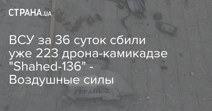 "По состоянию на 19 октября, с первого случая сбивания на территории Украины дрона-камикадзе иранского производства "Shahed-136" (13 сентября 2022 года, г. Купянск), противовоздушной обороной Воздушных сил и других составляющих Сил обороны Украины уничтожено 223 БпЛА этого типа", - сообщает командование Воздушных сил.