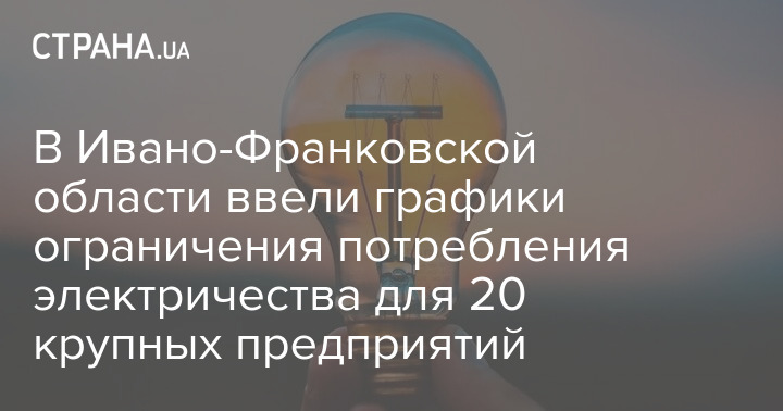 В Ивано-Франковской области применены графики ограничения потребления электроэнергии для 20 энергоемких промышленных предприятий с 07:00 до 23:00 20 и 21 октября.