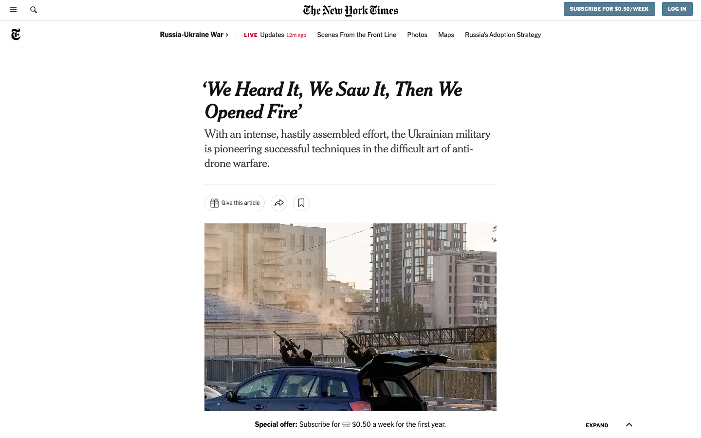 Американская газета The New York Times опубликовала репортаж о борьбе с иранскими дронами в Украине. Он вышел под заголовком "Мы услышали, мы увидели, потом открыли огонь".