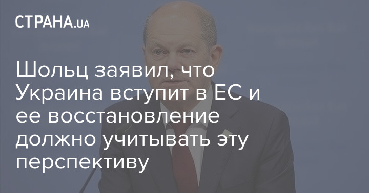 Шольц заявил, что Украина вступит в ЕС и ее восстановление должно учитывать эту перспективу
