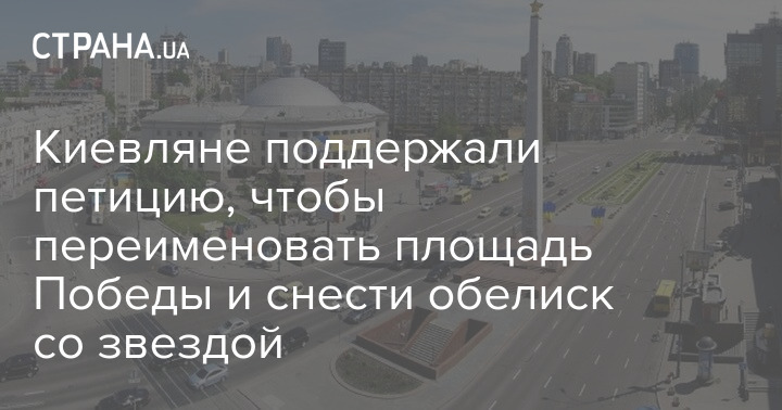 Киевляне просят местные власти переименовать площадь Победы и убрать с нее обелиск со звездой.