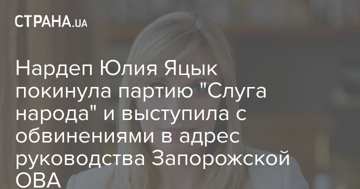 Нардеп Юлия Яцык покинула партию "Слуга народа". Она обвинила губернатора Александра Старуха, предпринимателя Геннадия Фукса и замглавы Запорожской ОВА Злату Некрасову в попытке осуществления ручного управления партийной ячейкой в Запорожской области.