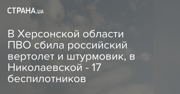 Сегодня в 8 утра подразделение Херсонской зенитной бригады Воздушного командования "Юг" сбило российский ударный вертолет Ка-52. Позже, в 8:40 был сбит российский штурмовик Су-25.