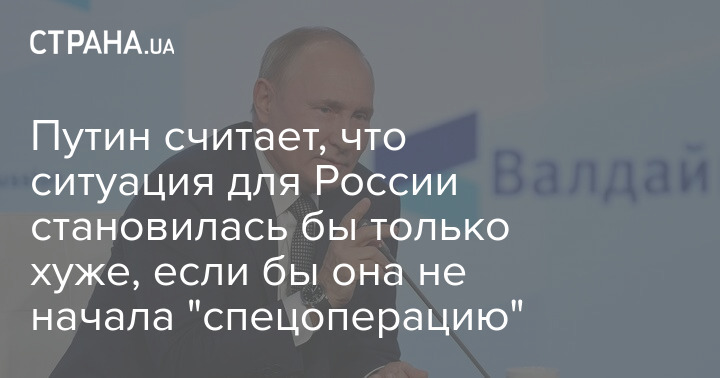 "Ситуация для России становилась бы только хуже, если бы не начали спецоперацию в Украине. Еще несколько лет, и для России была бы совсем другая ситуация, учитывая поставки в Украину оружия и строительство укрепрайонов", - сказал Путин.