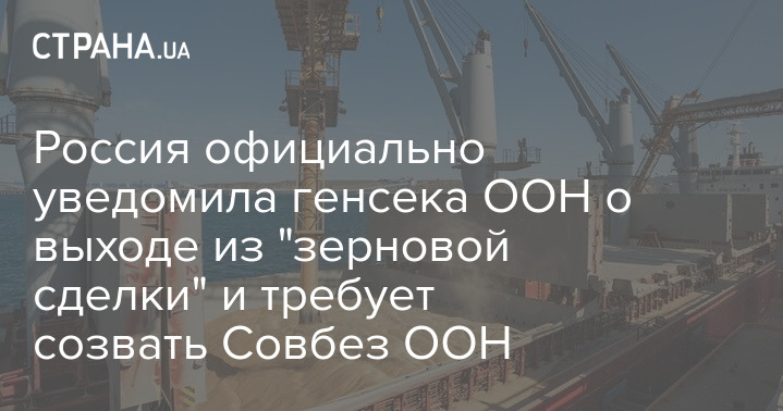 Россия направила генсеку ООН официальное уведомление, что выходит из "зерновой сделки".