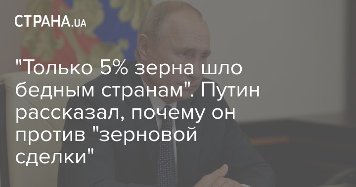 Российский президент подтвердил ранее сделанные его подчиненными заявления, что РФ не прекращает участия в "зерновой сделке", а приостанавливает его. При этом он привел несколько аргументов, почему выступает против сделки.