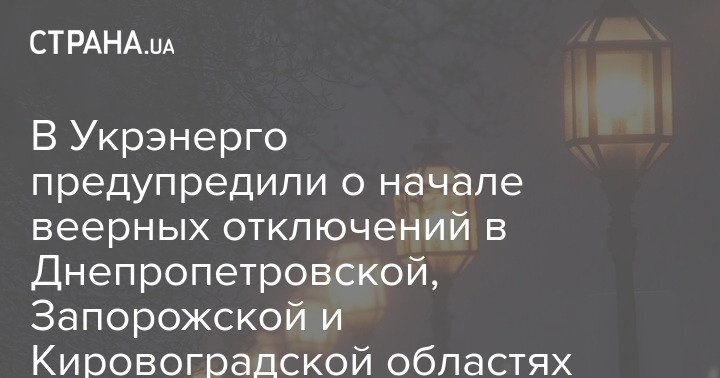 Пресс-служба компании Укрэнерго сообщила о том, что компания сегодня вечером дала команду на веерные отключения электроэнергии в Днепропетровской, Запорожской и Кировоградской областях