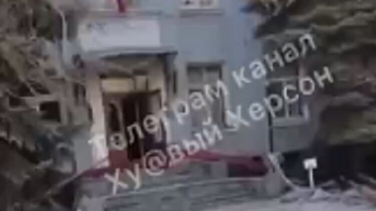 В Голой Пристани обстрелом почти полностью разрушено здание "администрации" РФ. Видео