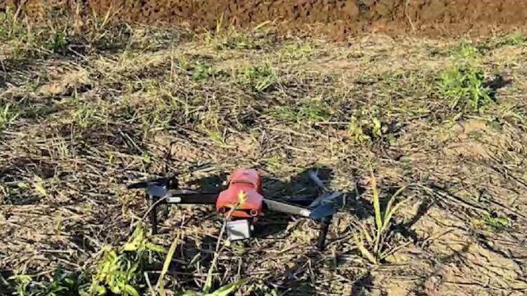 Пограничники в Гостомеле перехватили украинский беспилотник. Скриншот из видео