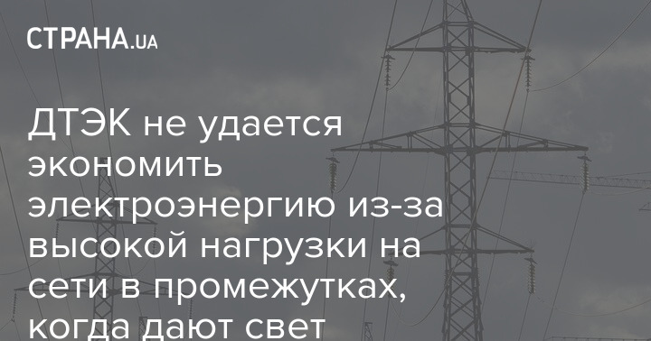ДТЭК не удается экономить электроэнергию из-за высокой нагрузки на сети в промежутках, когда дают свет