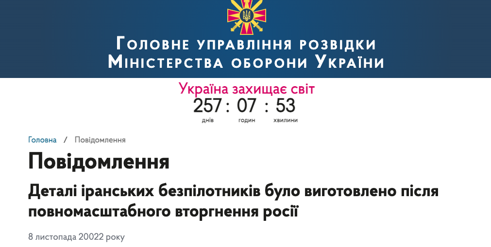 Детали применяемых в Украине иранских дронов были изготовлены уже после вторжения РФ - ГУР Минобороны