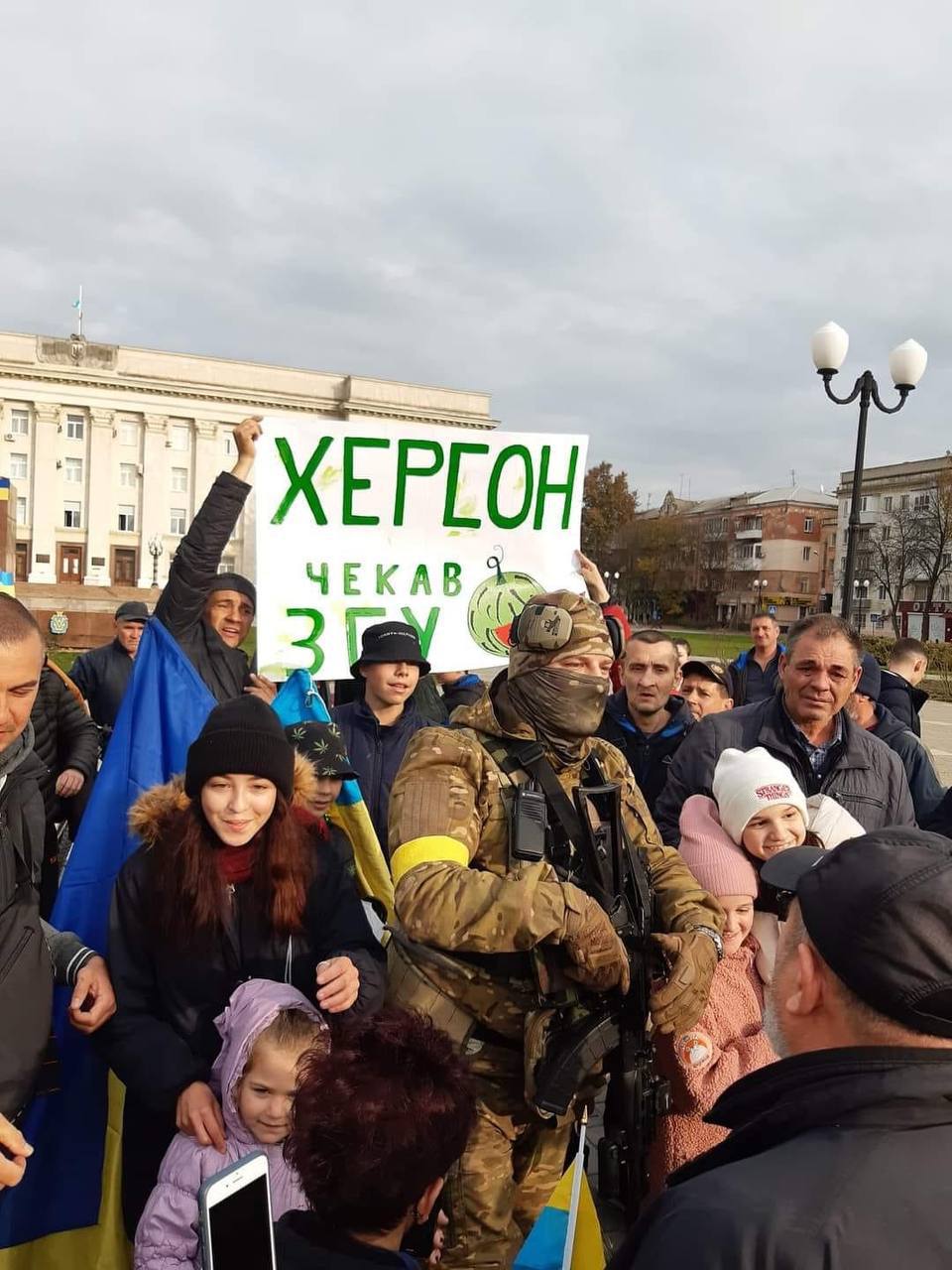 В пятницу, 11 ноября, ВСУ зашли в Херсон. Сперва их заметили в Шуменском микрорайоне на западе города, а затем появились и фото военных в центре Херсона.