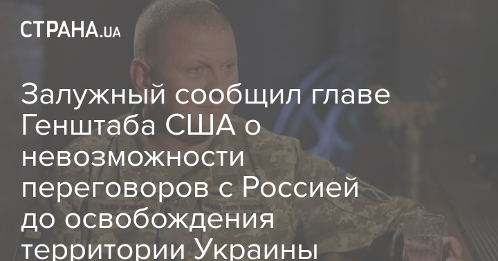 Главком ВСУ Валерий Залужный в телефонном разговоре заявил председателю объединенного комитета начальников штабов США генералу Марку Милли, что украинские военные не примут переговоров "на чужих условиях".