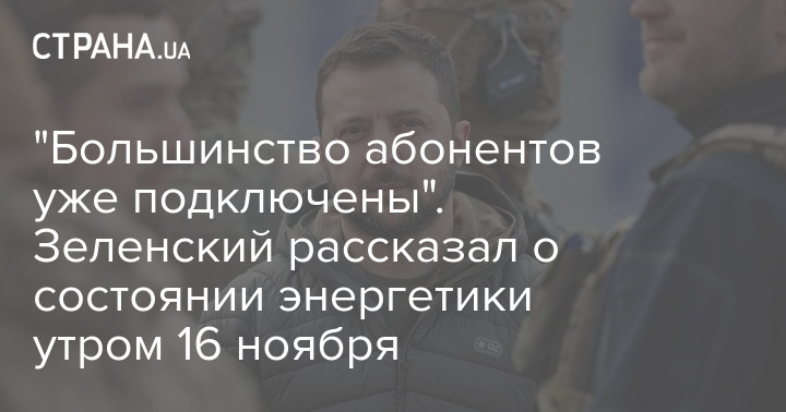 16 ноября президент Украины Владимир Зеленский записал утреннее видео о состоянии в энергетике. Говорит, что большинство абонентов Украины уже со светом.