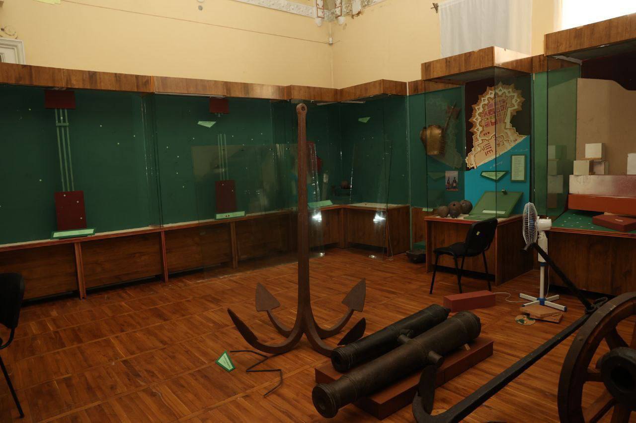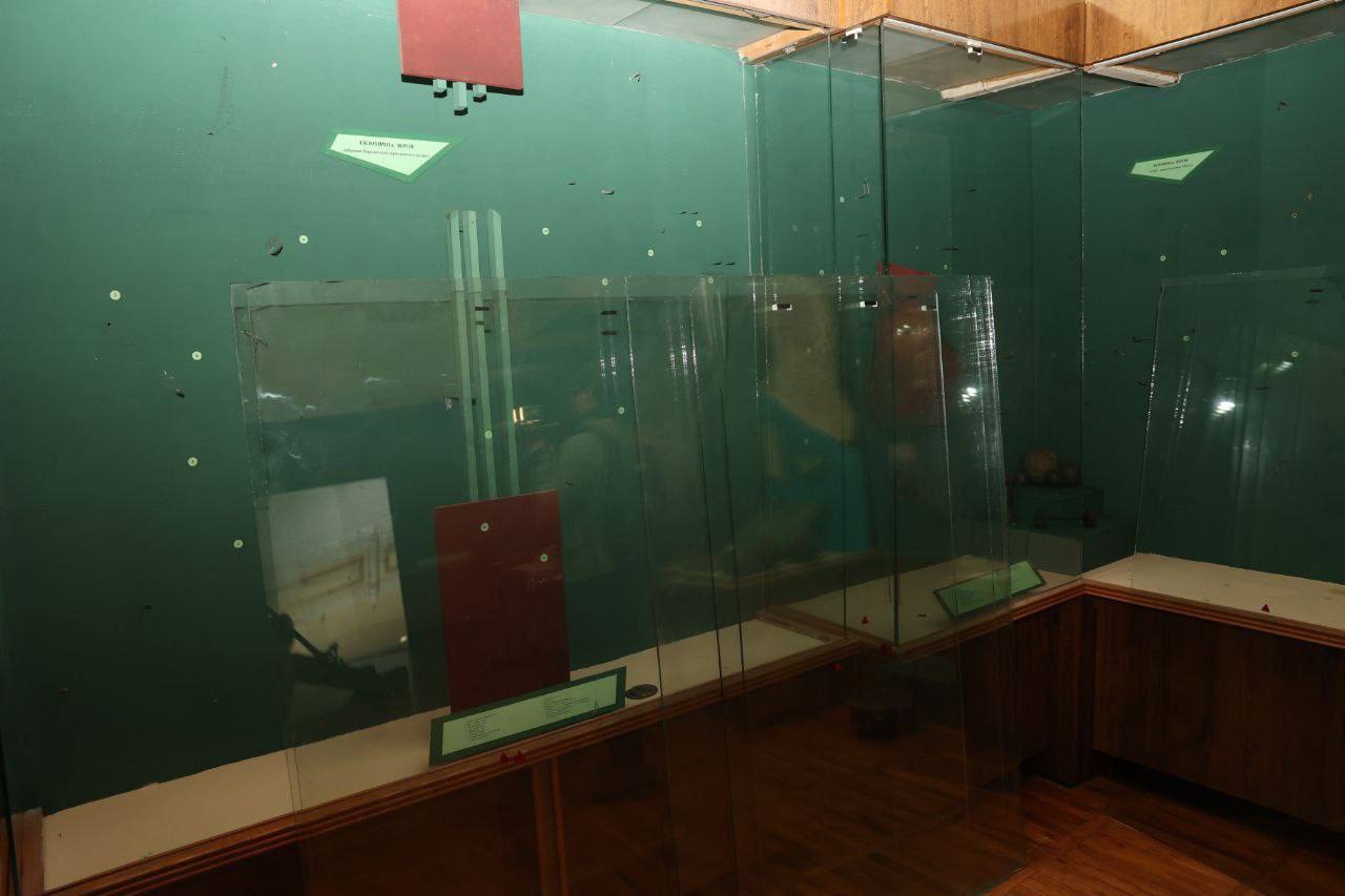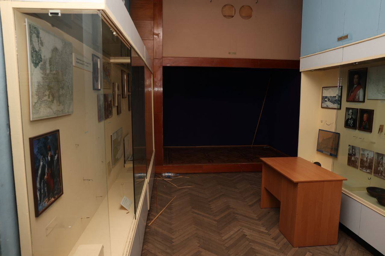 Почти все его экспонаты были вывезены россиянами – остались только камни, плакаты, карты и старые пушки. Изначально здесь хранилось более 170 тысяч экспонатов.