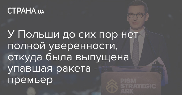Премьер-министр Польши Матеуш Моравецкий заявил, что до сих пор нет 100% уверенности, откуда была выпущена ракета, взорвавшаяся в польском Пшеводове. Расследование будет продолжено и займет "некоторое время".