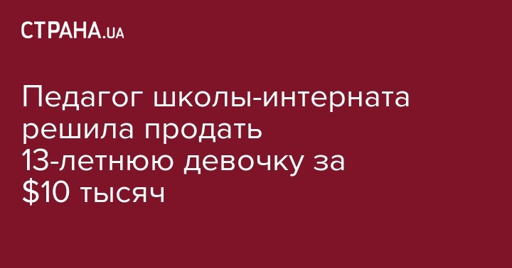 Педагог школы-интерната решила продать 13-летнюю девочку за $10 тысяч