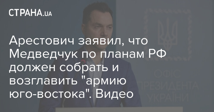 Арестович заявил, что Медведчук по планам РФ должен собрать и возглавить "армию юго-востока". Видео