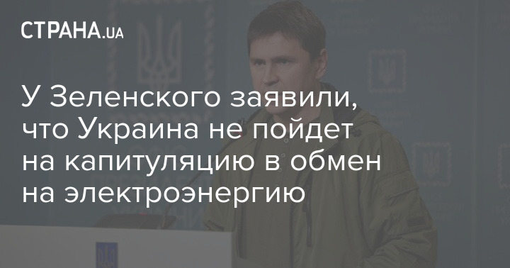 У Зеленского заявили, что Украина не пойдет на капитуляцию в обмен на электроэнергию