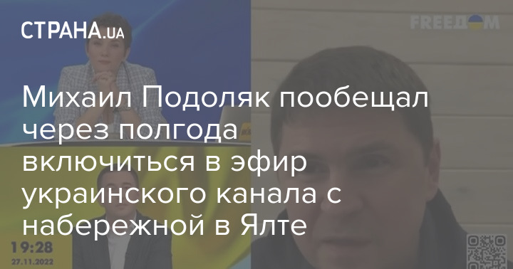 Советник главы Офиса президента Михаил Подоляк пообещал через 6 месяцев включиться в эфир украинского канала с набережной в Ялте.
